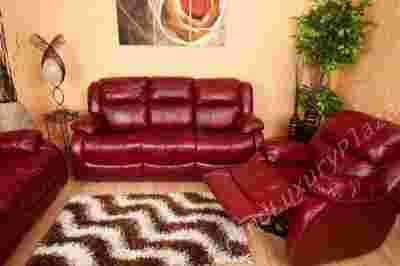 Przedmiotem sprzedaży jest nowy skórzany komplet wypoczynkowy 3+2+1 z funkcją relaks "RELAX TOP" w kolorze bordowym (0326),