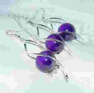 KOMPLET ZAIWESZKA KOLCZYKI ŁAŃCUSZEK FIOLET