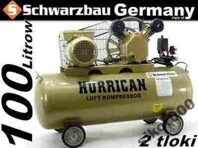 Przedmiotem aukcji jest nowoczesny 100 litrowy, 2 tłokowy kompresor olejowy schwarzbau-HURICANE. Urządzenie dysponuje dużą mocą. Waga to jedyne ok 70 kg dzięki czemu jest ona bardzo ergonomiczny, posiada również automatyczny system smarowania, filtrację powietrza, metalowe rączki transportowe, oraz koła transportowe.