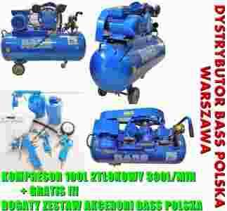 BASS KOMPRESOR 100L SPRĘŻARKA 2 TŁOKI 1,5KW 390L/min