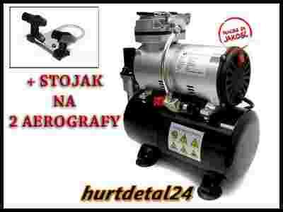 z czytelnym manometrem, posiadającym dwie skale. Posiada również stojak BD-H4 na dwa aerografy.