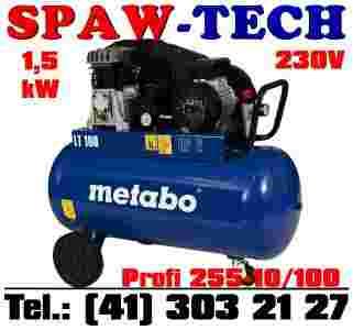 METABO Profi 255-10/100 to mobilny, dyspozycyjny, olejowy kompresor dwu-tłokowy. Do wszystkich profesjonalnych zastosowań! Sprężarka posiada termiczne zabezpieczenie silnika oraz osłonięty napęd pasowy z dużymi kołami pełniącymi rolę wentylatora. Przy kompresorze zainstalowano wyłącznik ciśnieniowy z odciążającym zaworem rozruchowym szczególnie przydatnym przy rozruchu w niskich temperaturach. Reduktor ciśnienia ma możliwość regulowania ciśnienia powietrza wydmuchiwanego, dodatkowo na kompresorze zainstalowano 2 manometry - wskazanie ciśnienia w zbiorniku i ciśnienia wyjściowego po redukcji.