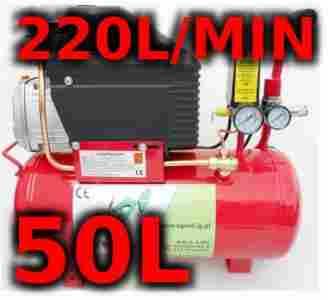 Kompresor posiada zbiornik o wielkości 50 litry. Maksymalne ciśnienie wytwarzane w butli to aż 8 barów. Silnik elektryczny napędzający sprężarka charakteryzuje się mocą 3.5 KM = 2600W .