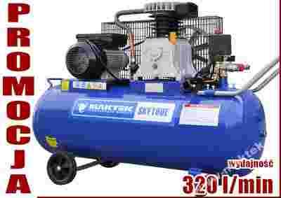 Sprężarka posiada zbiornik o pojemności 100 litrów. Maksymalne ciśnienie wytwarzane w butli to 10 barów. Silnik elektryczny napędzający sprężarkę charakteryzuje się mocą 3,0 KM. Konstrukcja z 2 tłokami chłodzonymi olejem zapewnia stabilność oraz długą żywotność urządzenia. Przy cylindrze założony jest filtr powietrza. Silnik posiada regulowane zawory z manometrami wskazującymi ciśnienie - z przodu kompresora po 2 wyjścia ( szybkozłączki ), wygodny włącznik umożliwiający włączenie/wyłączenie urządzenia oraz pracę ciągłą (sprężarka wyłącza się automatycznie po osiągnięciu maksymalnego ciśnienia). Każdy kompresor kupiony u nas, jest fabrycznie zalewany odpowiednią ilością oleju. Dostajesz gotowe do pracy urządzenie. Kompresor posiada zawór bezpieczeństwa, wziernik ułatwiający kontrolę poziomu oleju oraz specjalny zawór, który służy do usuwania zgromadzonej wewnątrz zbiornika wody co zabezpiecza przed korozją.