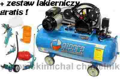 KOMPRESOR SPRĘŻARKA 100L 230V 8 BAR 3HP RIPPER DWUTŁOKOWY + ZESTAW LAKIERNICZY 5 CZĘŚCIOWY