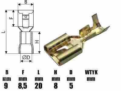 WYMIARY KONEKTORA (mm): B: 9 F: 8,5 L: 20 H: 8 D: 5