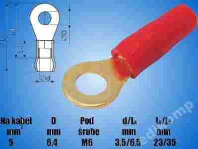 Końcówka z oczkiem, izolowana. Izolacja zapobiega przeginaniu sie końcówki podczas montażu przewodu.
