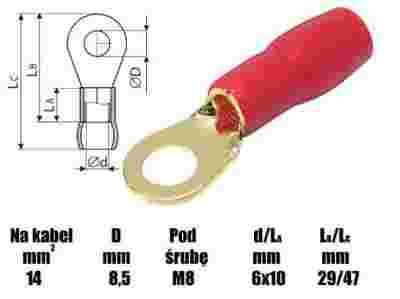 KONEKTOR OCZKOWY M8/14mm2 CZERWONY // 9556