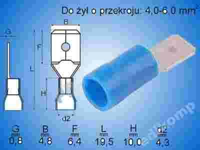 KONEKTOR PŁASKI MĘSKI IZOLOWANY 4,8 PRZEWÓD 4-6mm (10 szt)