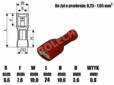 WYMIARY KONEKTORA (mm): B: 6,6 F: 7,8 W: 10 L: 24 H: 10 D: 3,6 Wtyk: 0,8