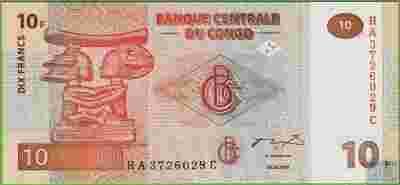 KONGO 10 Francs 2003 P93 UNC Rzeźba HA-C