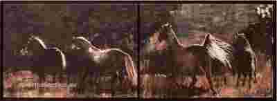 Przedmiotem aukcji jest obraz - dyptyk pt: "Konie w świetle księżyca", o wymiarach 210x76 cm, namalowany farbami akrylowymi na podobraziach płóciennych,