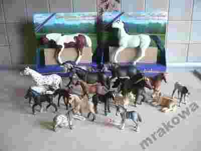 Duży arab i american Paint są to Kolekcjonerskie,ręcznie malowane figurki firmy Safari LTD z serii Blue Ribbon.Skala większa niz figurek schleich -dla porównania są zdjęcia przy figurce araba z tej firmy.Figurki są nowe -oryginalnie zapakowane ,nie do kupienia w Polsce i juz tylko nieliczne sklepy w Niemczech jeszcze ją mają -warte za granicą powyżej 80 zł/szt. Prawdziwa gratka dla miłośników koni i kolekcjonerów!