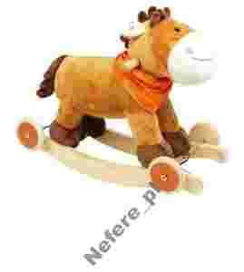 Śliczny konik wykonany z milutkiego pluszowego materiału będzie wspaniałym towarzyszem zabaw. Drewniane bieguny i kółeczka sprawiają, że w zależności od ich ułożenia konik może być bujaczkiem lub jeździkiem.