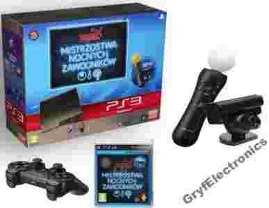KONSOLA PLAY STATION 3 Z DYSKIEM 320 GB DODATKOWO Z ZESTAWEM STARTOWYM MOVE ORAZ GRĄ MISTRZOSTWA NOCNYCH ZAWODNIKÓW W JĘZYKU POLSKIM !!!