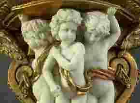 Piękna konsolka z trzema alabastrowymi figurami amorów w stylu barokowym.