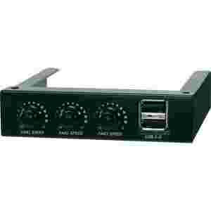Klasyczny, praktyczny i nieduży kontroler, który zmieści się w każdej kieszeni 3,5''. Urządzenie wyposażone jest w 3 kanały, których napięcie można niezależnie zaprogramować w przedziale od 7 do 12 V. Dodatkowo kontroler daje możliwość doprowadzenia z zewnątrz dwóch połączeń USB 2.0.