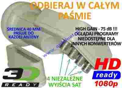 Konwerter SAT full HD QUAD 3D 75dB Cyfra Polsat N