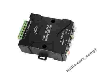 Wysokiej jakości 4-kanałowy konwerter sygnału głośnikowego do poziomu wejść RCA zewnętrznego wzmacniacza mocy. Umożliwia podłączenie radioodtwarzaczy nie posiadających wyjść RCA (CINCH) do dowolnego zewnętrznego wzmacniacza mocy. Posiada filtr zakłóceń oraz separuje składową stałą (DC).