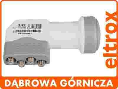 Konwerter poczwórny firmy Technisat SkyLine CE HD Quad. Posiada duże wzmocnienie (60dB) przy stosunkowo niskich szumach własnych (0,3dB). Wykonany w technologii EcoTec (niski pobór prądu) w obudowie odpornej na trudne warunki atmosferyczne (bryzgoszczelna osłona złącz F).