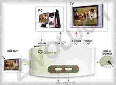 Za pomocą ów konwertera zmienisz swój TV w monitor. I możesz oglądać w TV co dzieje się w komputerze. Do poprawnej pracy nie jest konieczne instalowanie specjalnego programu. Po prostu podłączasz i oglądasz. Zarówno w DOS jak i Windows czy też Linuks oraz VISTA (wystarczy że karta graficzna wyświetla obraz w jednej z obsługiwanych rozdzielczości, specyfikacja poniżej).