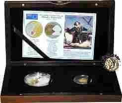 dwie monety: złota + srebrna + kryształy svarowski