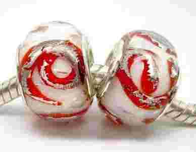 Koralik modułowy BIAŁO - CZERWONY PRZEŚLICZNY HIT