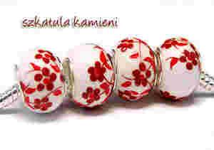- Koralik MODUŁOWY CERAMIKA 13mm- kwiatki czerwone