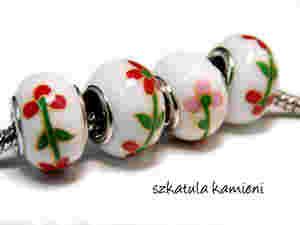--- Koralik MODUŁOWY ceramika w kwiatki ---- biel