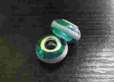 KORALIK MODUŁOWY LAMPWORK TURKUSOWE PASKI 14MM 1SZ