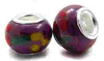 Kolory występujące w koraliku: srebrny, żółty, zielony, czerwony, fioletowy