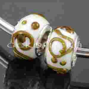 Koralik modułowy SZKLANY 3D wypukły pan57 biały z zawijasami