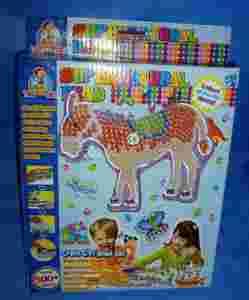 Wymiary opakowania 30x21cm. Zestaw do twórczej zabawy, rozwijającej wyobraźnię i myślenie przestrzenne: wystarczy na dołączonym szablonie ułożyć kolorowe koraliki, zaprasować ciepłym żelazkiem przez pergamin (dołączony do opakowania) i piękny obrazek gotowy! Bajecznie kolorowa zabawka kreatywna. Rozwija wyobraźnię.