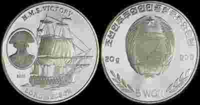 Korea, 5 Won 2003, Żaglowiec, Lord Nelson, Ag 999