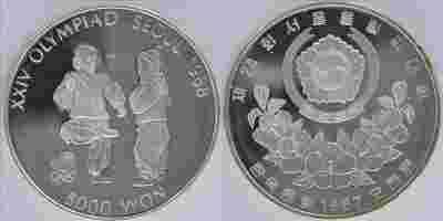 KOREA PD 5000 WON Ag 1987 HEGI - KICKING