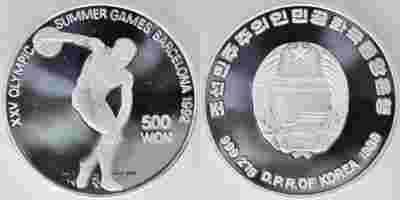 KOREA PN 500 WON Ag 1989 BARCELONA DYSKOBOL