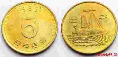 KOREA POŁUDNIOWA 5 WON 1983 MARYNISTYKA STATEK