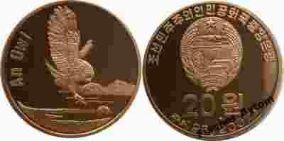 KOREA - SOWA - 20 WON - MIEDŹ