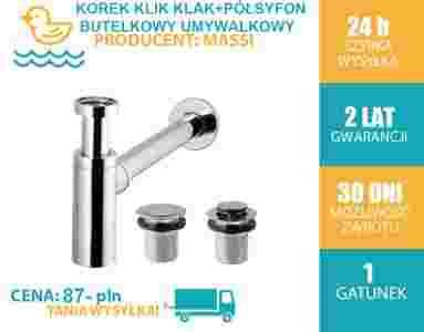 KOREK KLIK KLAK + SYFON DO UMYWALKI BEZ PRZELEWU