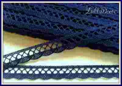 Przedmiotem aukcji jest koronka bawełniana klockowa szerokości 18 mm w kolorze granatowym.