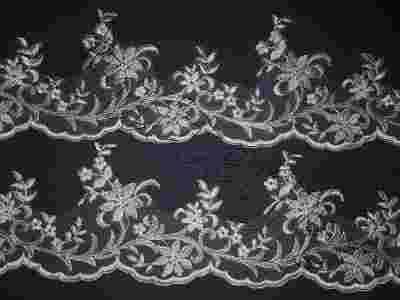 Koronka francuska zdobiona srebrną nicią szer15cm