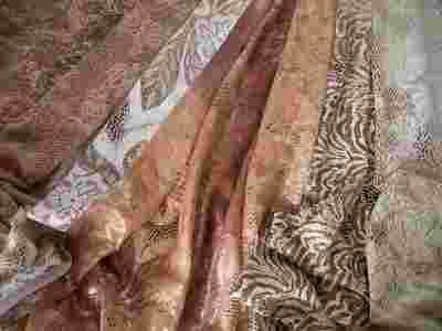4.Bardzo ładna solidna wypukła koronka z połyskiem,rozćiągliwa Bardzo efektownie wygląda w zasłonach, ale dobra też i na udrania. Szer.150 cm.