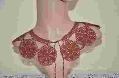 Koronkowy brązowy bawełniany kołnierzyk zrobiony na szydełku z najwyższą starannością.