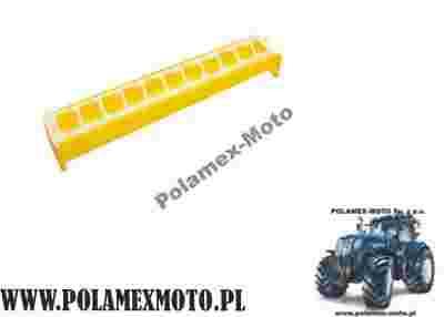 Korytko podłużne wyposażone w plastikową kratkę uniemożliwiającą ptactwu wchodzenie, zabrudzanie i rozsypywanie paszy. Kratka jest zdejmowana, co ułatwia uzupełnianie paszy. Korytko ma długość 40 cm i posiada 11 przegródek.