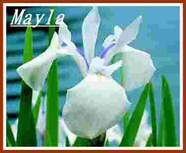 Irys wodny pochodzący z Japonii,kwiaty białe,dorasta do 60 cm wysokosci.