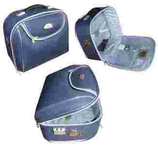 Kosmetyczka profesjonalnie wykonana z granatowego nieprzemakalnego materiału z plastikową rączką.
