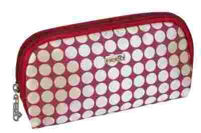 Kosmetyczka z serii CANDY RED. Wymiary: 17 x 2 x 9 cm Wykonana z przepięknej, srebrnej satyny wysokiej jakości z winnoczerwonym, matowym nadrukiem, co tworzy bardzo ciekawą całość. Lamówki i rączka w kolorze czerwonego wina wykonane również z satyny. Wnętrze kosmetyczki wykończone bardzo starannie podszewką w kolorze dopasowanym do całości. Zapinana na zamek. Kosmetyczka idealna do torebki.