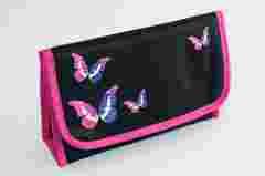 Lamówka i motylki w kolorze różówym.