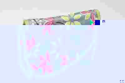 nieprzemakalnego materiału w kwiaty na popielatym tle.