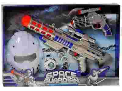 Zestaw w całości jest interaktywny. Duży karabin kosmiczny po nasiśnięciu spustu wydaję odgłosy strzelania, wraz z efektami dźwiękowymi i świetlnymi. W trakcie strzałów świeca się kolorowe światełka, uatrakcyjniające zabawkę. Podręczny miotacz plazmowy wydaje odgłosy dźwiękowe i miga na czerowno światłem. Wyrzutnia tarcz jest przystosowana do zapięcia na nadgarstku, zakłada się do niej tarcze i za pomocą 1 nacisku spustu wyrzuca tarcze. Maska żołnierza, służy do ochrony przed promieniami z miotacza laserowego. Fantastyczny, kosmiczny zestaw przeznaczony dla odważnego młodego żołnierza.